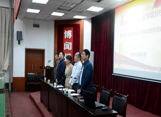 2019年4月8日,我院在一号楼二号报告厅进行第二期入党积极分子培训班开班典礼。我院党总支副书记杜明生、党政办公室主任王宗运、学工办主任刘丽娜、学生党支部书记王宝堂、张善红、周瑶及225名入党积极分子参加开班典礼。典礼由王宗运老师主持。