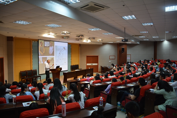 2016年5月11日晚,我校图书馆一楼报告厅座无虚席、掌声阵阵。长安大学建筑学院副教授、硕士研究生导师岳红记老师正在这里作题为“国际视域下的中国书法研究”的学术报告。