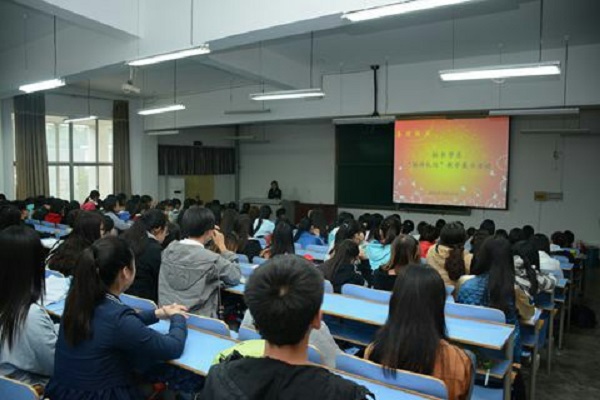 秘书学专业全体师生在一号教学楼多媒体5举行了“喜迎校庆·秘书学系‘接待礼仪’教学展示活动”。活动由秘书学系主任张晓倩主持。秘书学系教师唐晓琴结合校庆接待工作,从举止、表情、引导手势、称谓礼仪四方面做了具体讲解。秘书1501班的同学身着正装上台,现场演示站姿、走姿和引导手势等。张晓倩、唐晓琴现场指导,使同学们更直观地发现不足并努力改进。