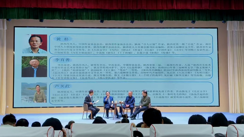 为配合陕西省“全民阅读活动周”暨“版权宣传周”启动仪式在商洛市举行,进一步搭建本土作家、文学工作者和爱好者与文学名家之间的交流平台,4月23日,由中共商洛市委宣传部、商洛市文学艺术界联合会主办,商洛学院人文学院、商洛市作家协会共同承办的“文润商山·书香筑梦”——名家面对面、共话文学路主题活动在商洛学院八号楼多功能厅举行。商洛学院校友、知名作家陈仓、李育善以及其他文学名家齐聚一堂,与商洛市作家协会作家代表、商洛学院师生代表共400余人分享创作感悟。