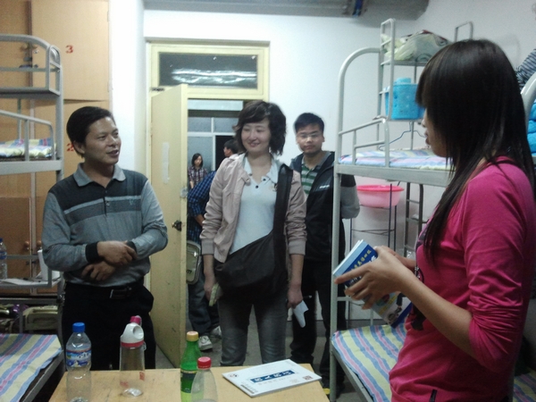 2011 年9月8日 晚,我系党总支书记张彦民、系副主任刘勇、2011级辅导员黄璜及学生代表,前往公寓楼看望2011级新生,并进行了亲切的交谈。
