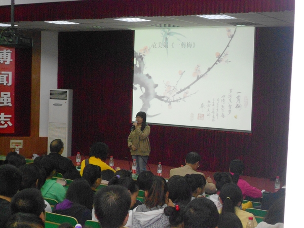 9 月28日 晚7:30,由我系团总支主办,第一学生党支部承办的中华古典诗词吟唱会,在一号楼报告厅二隆重举行。我系教授王天时,辅导员赵文英、黄璜、刘丽娜担任此次活动评委。