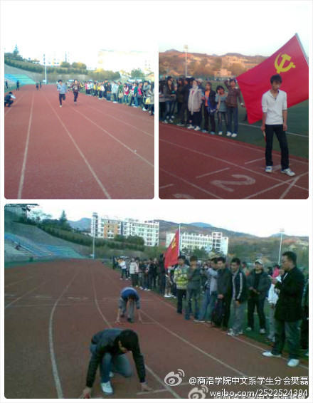 继 11 2 日我系成功举办“党旗映团徽,献礼党代会”活动月首场活动后, 11 9 日下午,我系在学院体育场举办“党旗接力”比赛。 2011 级全体学生参加了本次活动。